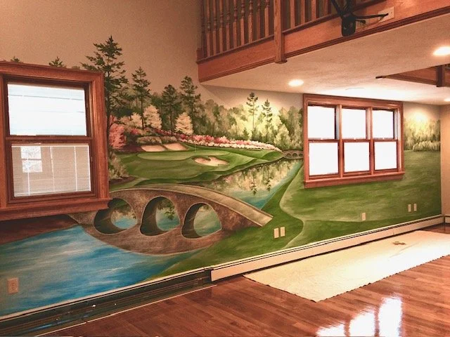 While traveling the world playing golf on some of the most beautiful courses, I began to create a collection of golf course paintings, while painting murals and custom artwork for private and public golf courses and country clubs throughout the United States and Europe.
